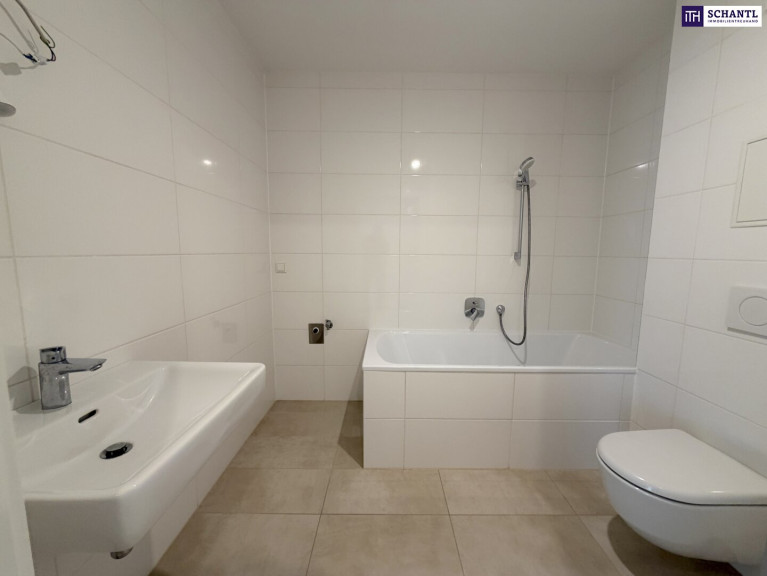 Das großzügige Schlafzimmer mit knapp 16 m² bietet viel Platz und angenehme Rückzugsmöglichkeiten. Das Badezimmer mit integriertem WC überzeugt mit Badewanne, Handwaschbecken und Waschmaschinenanschluss. Ein ideal geschnittener Vorraum mit ca. 4 m² sorgt für einen einladenden Empfang und zusätzlichen Komfort.