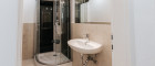 - an diesen schließt der Wellnessbereich mit Schwimmbad, Sauna, Kaltwasserbecken, Umkleide, Dusche und Toilette an