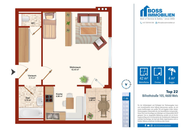 Unverbindliches, freibleibendes Angebot. Informationen nach bestem Wissen und Gewissen vom Abgeber erhalten - für die Richtigkeit wird keine Haftung übernommen. Mündliche Nebenabreden zum angebotenen Objekt bedürfen zu Ihrer Wirksamkeit der Schriftform. Irrtümer, Druckfehler und Änderungen vorbehalten. Besichtigungen und Beratungen erfolgen kostenlos, lediglich im Falle einer erfolgreichen Vermittlungstätigkeit ist die gesetzliche bzw. angeführte Provision in Höhe von 3% des Bruttoverkaufspreises zzgl. 20% USt. zur Zahlung fällig. Der Vermittler ist als Doppelmakler tätig. Es besteht zwischen dem Vermittler und dem Abgeber kein wirtschaftliches Naheverhältnis. Information zum Datenschutz unter www.bossimmobilien.at/datenschutz