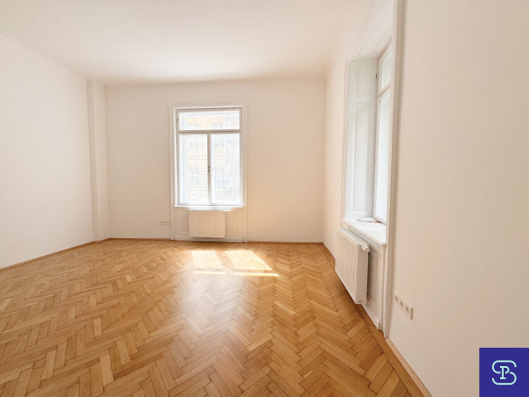 Ausstattung: Erstbezug nach Sanierung mit Fischgrätparketten, Flügeltüren und Kassettenfenster, Fliesenbad mit Dusche, Toilette mit Handwaschbecken, Kabel-TV und Internetvorbereitung, Sprechanlage.