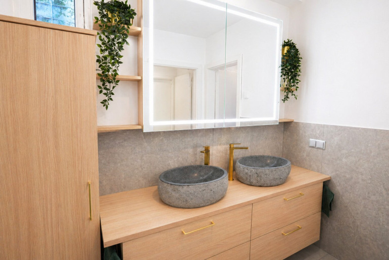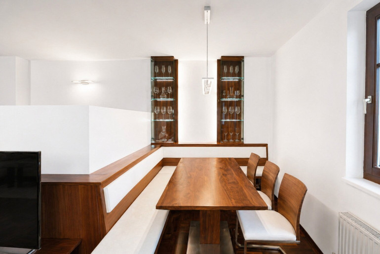 Neue Gastherme und Boiler, teilweise Fußbodenheizung, moderne Sanitäranlagen, maßgefertigte Badmöbel (Tischlerarbeit), neuer Parkettboden sowie neue Fliesen.