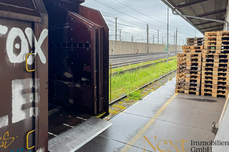 Diese Gewerbeliegenschaft, bestehend aktuell aus einer Lagerhalle sowie diversen Büroflächen, aufgeteilt auf drei Etagen (UG, EG, OG). Besonders hervorzuheben ist der direkte Gleisanschluss.