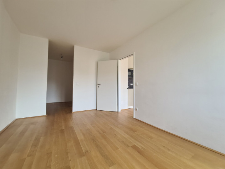 Top 24 im 4. Liftstock, zentraler Vorraum, Wohnzimmer mit Einbauküche und Geräten, Schlafzimmer mit begehbarer Garderobe, Parkettböden, Bad mit Wanne, extra Toilette, Abstellraum, Balkon