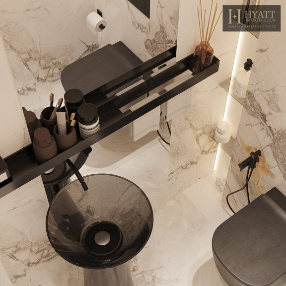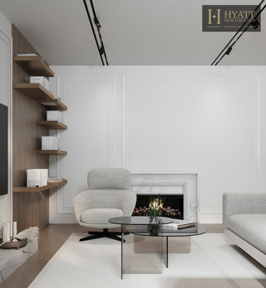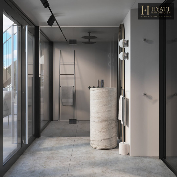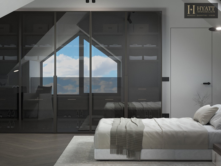 Die Wohnung ist hochwertig ausgestattet – in den Wohnräumen wurde edles Fischgrätparkett verlegt, während die Nassräume mit modernen Fliesen versehen sind. Die dreifache Terrassenfläche, die klare Linienführung und die Architektur des Dachausbaus erzeugen ein modernes und zugleich gemütliches Wohngefühl.