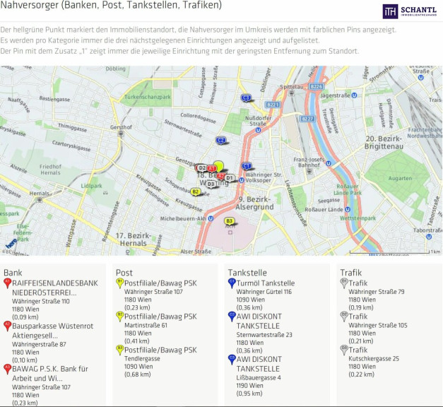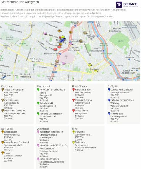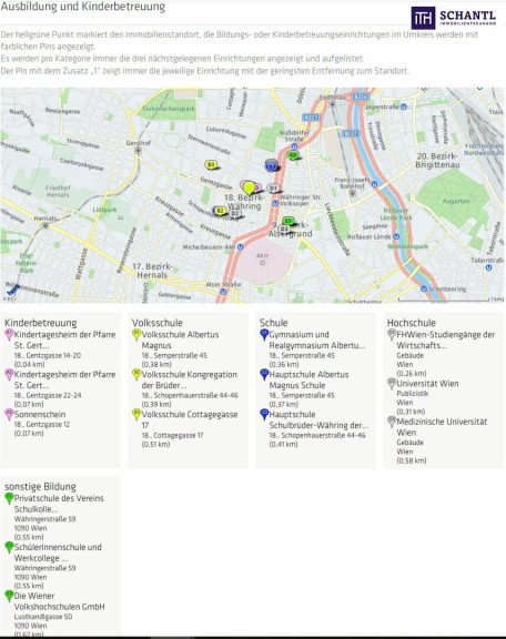 Die Lage wird Sie restlos begeistern! Profitieren Sie von einer perfekten Infrastruktur - alle Geschäfte des täglichen Bedarfs befinden sich in Gehweite, ebenso zahlreiche gute Schulen, Kindergärten sowie Ärzte und Apotheken. Auf der nahe gelegenen Währingerstraße schlägt das Herz der Shoppingbegeisterten höher, zahlreiche Boutiquen laden zum Bummeln ein. Naturliebhaber kommen hier auch voll auf Ihre Kosten - in nur 10 Gehminuten erreichen Sie einen der schönsten Parks von Wien, den "Türkenschanzpark", ebenso den "Sternwartepark" oder das schöne grüne Cottage-Viertel. Auch kulinarisch werden Sie hier verwöhnt. Geheimtipps, bekannte Restaurants, Szenelokale und Bars bereichern ihr neues Grätzl. Frisches Obst und Gemüse können Sie bequem vom nur wenige Minuten entfernten Kutschkermarkt holen - ein Treffpunkt für Jung und Alt. Ihre neue Wohnung ist idealer Ausgangspunkt für Ausflüge ins Grüne wie den Kahlenberg, Schafberg, Neuwaldegg, den Pötzleinsdorfer Schlosspark oder Klosterneuburg, in knapp 10 Minuten gelangen Sie aber auch in die City. Öffis: U6, Straßenbahn 40 und 41, Nachtbus 41A