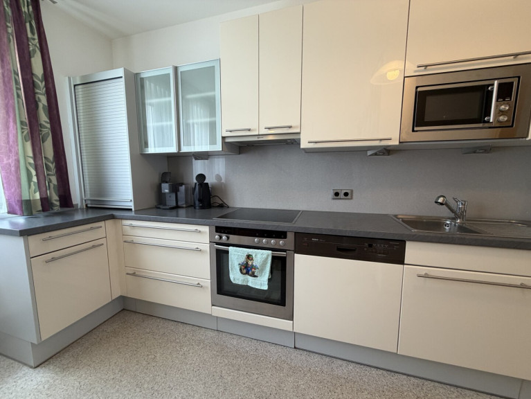 Gas, Heizofen, Zentralheizung, Einbauküche, Westbalkon, Bad mit Fenster, Badewanne, Dusche, Garage