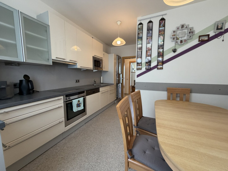 Ein besonderes Highlight ist die großzügige, westseitige Loggia, der direkt vom Wohnzimmer aus begehbar ist und entspannte Abendstunden mit optimaler Sonneneinstrahlung ermöglicht. Ergänzt wird das Wohnambiente durch einen stilvollen Kaminofen im Wohnzimmer, der für zusätzliche Behaglichkeit sorgt.