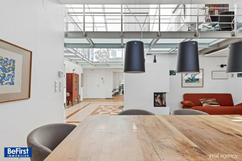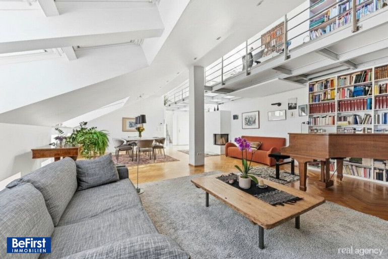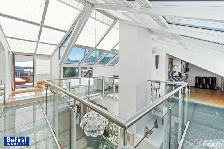 Diese sehr schicke und architektonisch toll gestaltete Dachterrassenwohnung in phantastischer Lage zwischen der Votivkirche und dem Servitenviertel gelegen, besticht neben der modernen und offenen Raumaufteilung allen voran durch zwei ruhig gelegene, herrliche Terrassen. Die Immobilie mit rd. 181m2 Wohnnutzfläche (inkl. 22,25m2 Galerie) wurde hochwertigst in einem der zauberhaften Gründerzeithäuser am Beginn der Berggasse errichtet. Die Wohnfläche teilt sich in eine erste Ebene mit großzügigem Entree, dem wunderschönen Wohnbereich, einer separaten, lichtdurchfluteten Küche und dem Schlafzimmer mit einem angeschlossenen Badezimmer sowie der in einen hübschen, sonnendurchfluteten Innenhof ausgerichteten rd.16m2 großen Terrasse. Eine Garderobe, ein weitere Abstell- und Wirtschaftsraum etc. zählen zudem zu der perfekt gestalteten Immobilie und geben ausreichend Stauraum. Die Decke im Eingangsbereich reicht durchgehend bis ins Obergeschoss und bietet damit in beiden Ebenen viel Licht und Helligkeit. Auch im OG zeigt sich die harmonische Planung. Eine nach beiden Seiten offene, verglaste Galerie dient als verbindendes Element zu einem Kinder-/Gästezimmer, einem Arbeitsbereich und einem weiteren Bad mit Dusche/WC sowie der herrlichen 20m2 großen zweiten Terrasse, die ebenfalls in den Innenhof ausgerichtet ist. Beheizt wird mit Gas oder über den wunderschönen, offenen Kamin im Wohnbereich. Alle Veluxfenster verfügen über Innen- und Außenbeschattung. Zwei Dachfenster sind von beiden Etagen aus elektronisch zu bedienen. Die Kühlung erfolgt über Klimageräte.