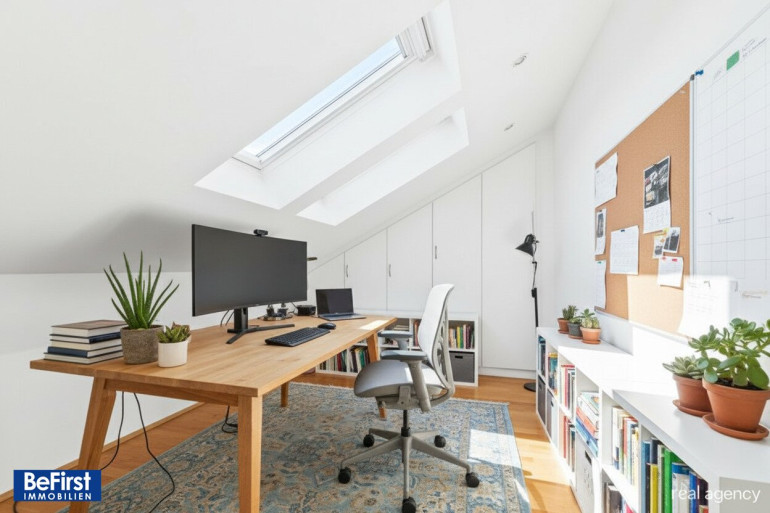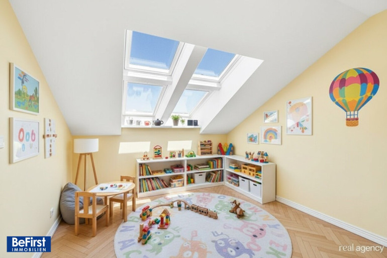 Hinweis: zwei Bilder wurden zur Veranschaulichung der Gestaltungsmöglichkeiten KI generiert umgestaltet (Küche zu einem Kinderzimmer - die Küche kann im großen Wohnbereich als offenen Küche eingebracht werden - und das kleinere ZI im Obergeschoss ist zusätzlich als Arbeitsraum dargestellt)