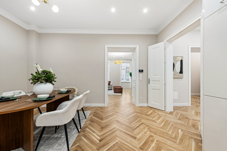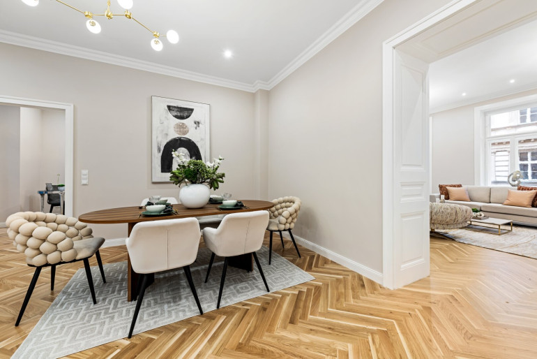 This exclusively renovated and high-quality furnished flat is in a great location close to the city centre. Just a few steps away from one of Vienna's best shopping and promenade streets, where you can discover numerous designer boutiques and department stores as well as a diverse gastronomy scene. The top restaurant CHEZ BERNARD with its breathtaking rooftop terrace is also not far away. On the way to the MuseumsQuartier, you pass the Spittelberg, a lovingly revitalised Biedermeier area with numerous restaurants, cafés and bars with idyllic guest gardens. Often referred to as the ‘village in the city’, this is probably Vienna's most beautiful quarter and has the second largest pedestrian zone in the city with well-preserved historic buildings and idyllic little squares, and is also just a few minutes' walk from the city centre. Art and culture can be found in the adjacent modern MuseumsQuartier with its contemporary museums. The lively square in front of the museums is a favourite place for locals and tourists all year round.
