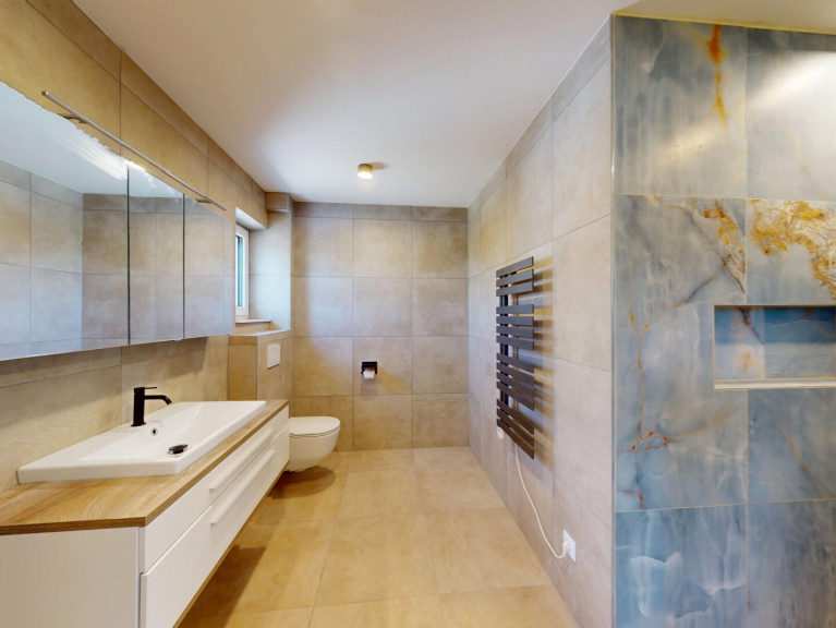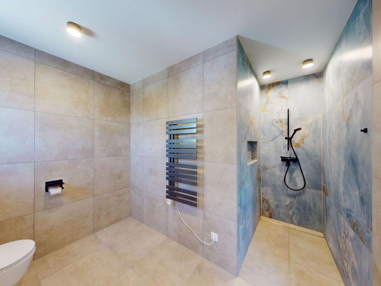 Elektro, Fußbodenheizung, Heizofen, Bad mit Fenster