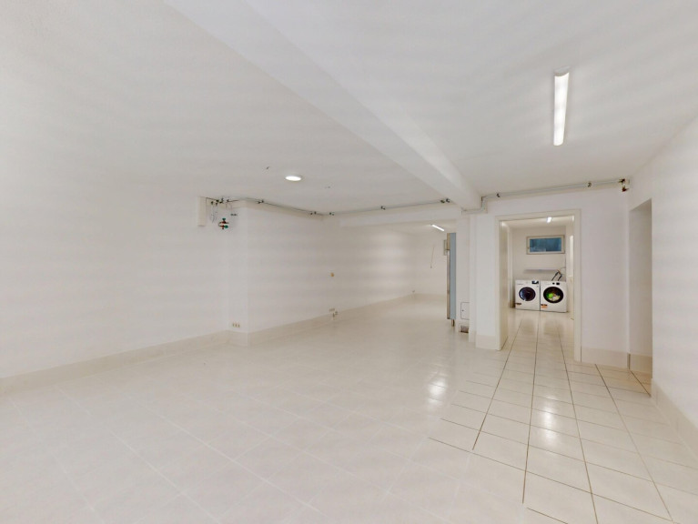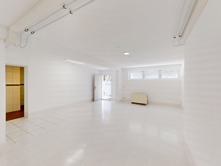 - Kellergeschoss mit ca. 85m² Fläche, mehreren Fenstern, Dusche und WC und einer Raumhöhe von 230cm