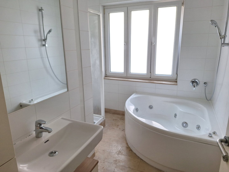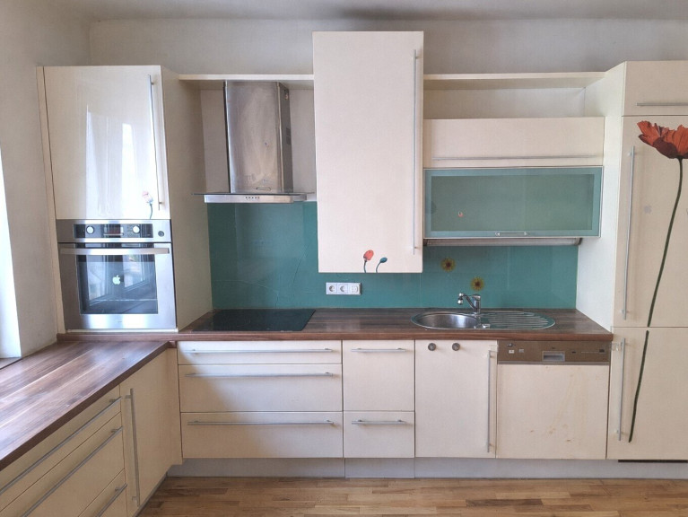 Parkett, Fliesen, Gas, Etagenheizung, Einbauküche, Personenaufzug, Dusche, Bad mit Fenster, Badewanne