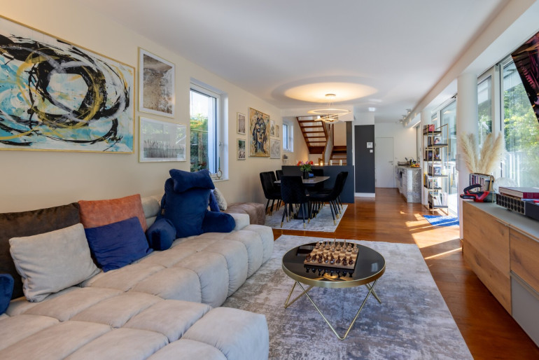 In einer der besten Lagen des 19. Bezirks – ruhig gelegen am Hackenberg – präsentiert sich dieses freistehende Einfamilienhaus als seltene Gelegenheit für anspruchsvolles Wohnen. Auf drei Wohnebenen bietet die Liegenschaft vier helle Zimmer mit unverbaubarem Blick über die umliegenden Weinberge. Der gepflegte Garten mit Pool bietet Rückzug und Privatsphäre, während die großzügige Dachterrasse mit Whirlpool, eindrucksvolle Ausblicke und stimmungsvolle Sonnenuntergänge über Wien ermöglicht. Im Inneren überzeugt das Haus durch eine durchdachte Raumplanung, hochwertige Ausführung und eine Einrichtung mit klarer Linie und Liebe zum Detail – ein modernes Wohnambiente mit hoher Qualität.