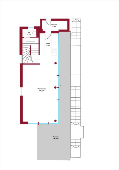 - Wohnraum, ca. 26,51m² mit Zugang zur Terrasse