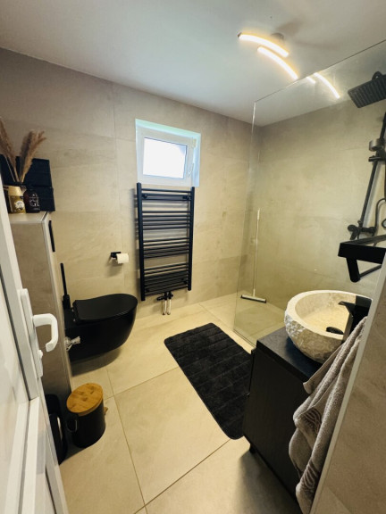 Für wohlige Wärme sorgt eine moderne Zentralheizung kombiniert mit einem gemütlichen Kamin, der an kühleren Tagen für behagliche Stimmung sorgt. Die Heizung wird mit Öl betrieben und garantiert so eine zuverlässige Wärmeversorgung. Die Einbauküche ist funktional und stilvoll gestaltet, sodass Kochen hier zum Vergnügen wird. Das Badezimmer punktet mit einem Fenster, das für viel Tageslicht und eine angenehme Belüftung sorgt.