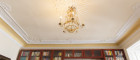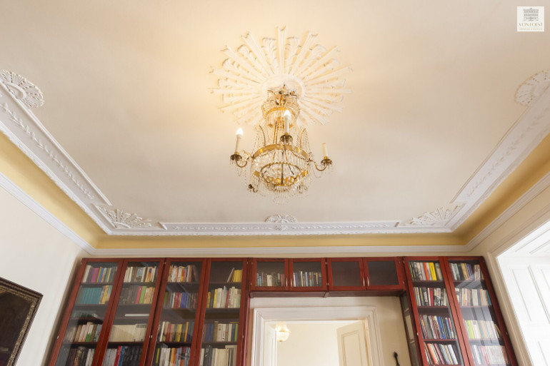 Die weiteren Räume – ob als Schlafzimmer, Arbeitszimmer oder Bibliothek genutzt – überzeugen durch ihre Großzügigkeit sowie durch liebevoll erhaltene Altbaudetails wie edles Fischgrätparkett, detailreich gearbeitete Stuckornamente im Originalzustand, klassische Flügeltüren und hohe Fenster mit traditionellen Kastenrahmen, die den historischen Charme in jedem Raum spürbar machen.