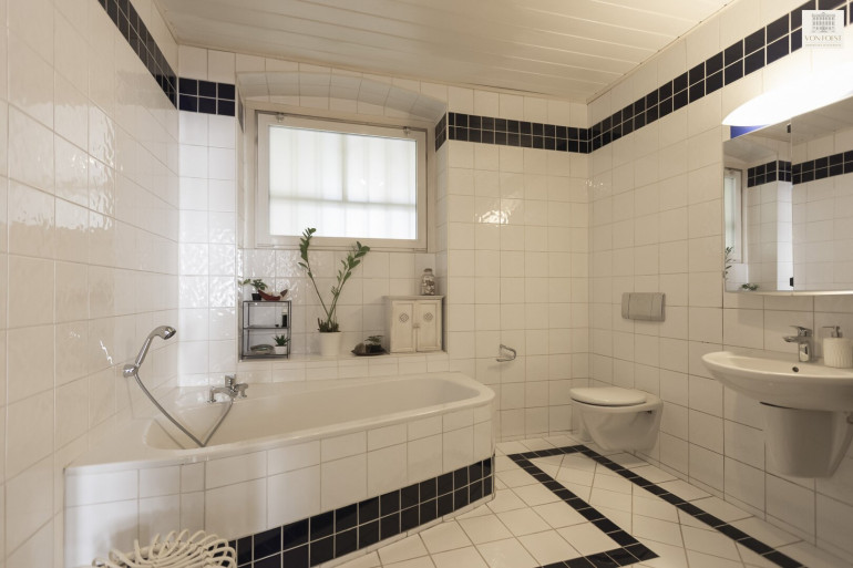 Fliesen, Parkett, Gas, Einbauküche, Personenaufzug, Bad mit Fenster, Badewanne, Dusche, Garage, Alarmanlage, Sauna
