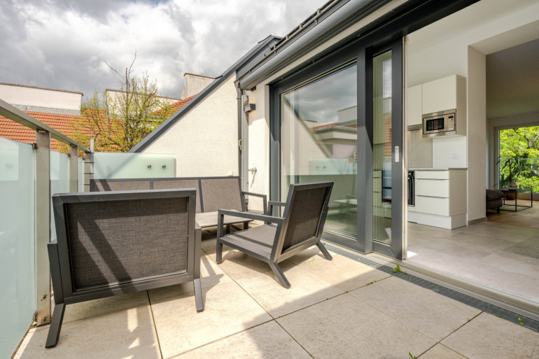Genießen Sie entspannte Stunden auf Ihrer eigenen Terrasse. Ob bei einem Glas Wein am Abend oder beim Frühstück an sonnigen Tagen – diese Rückzugsoase wird schnell zu Ihrem Lieblingsplatz.