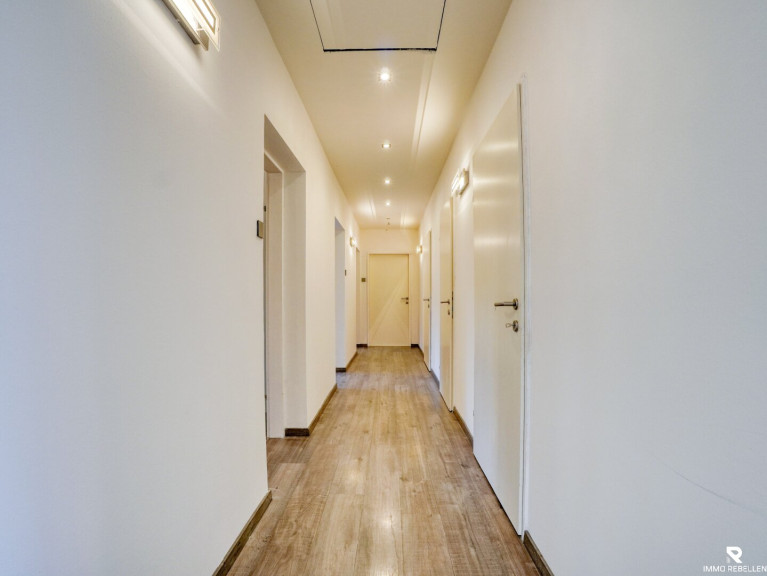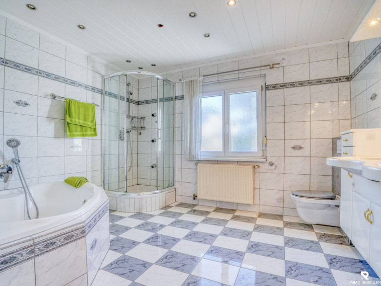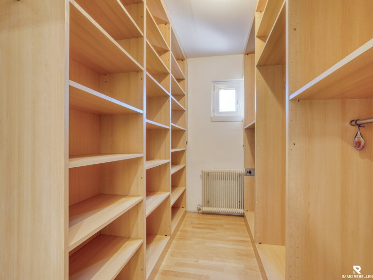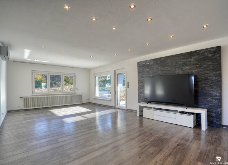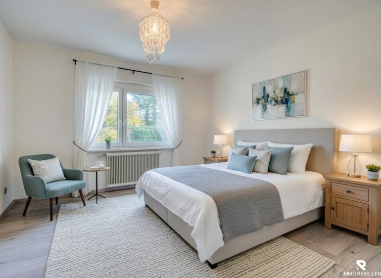 Der ursprüngliche 6-Zimmer-Grundriss wurde optimal angepasst: Heute bietet der Bungalow 5 gut geschnittene Zimmer, darunter ein vergrößertes Badezimmer und ein begehbarer Kleiderschrank. Die Wohnfläche von ca. 135 m² verteilt sich barrierefrei auf einer Ebene, ergänzt durch einen ca. 60 m² großen Keller.