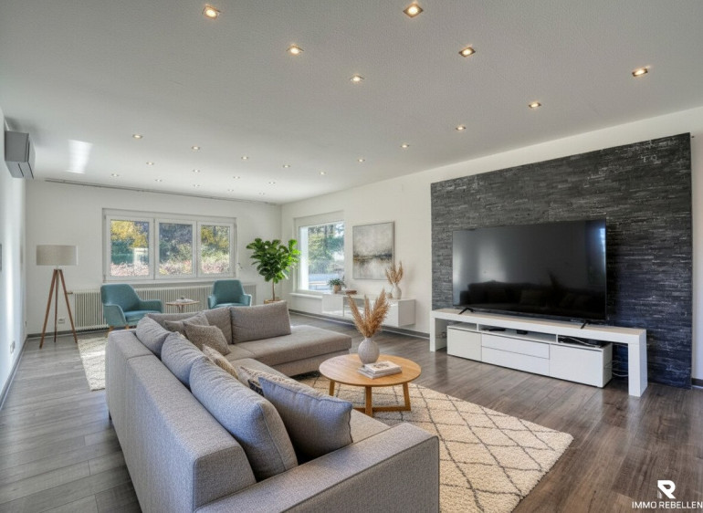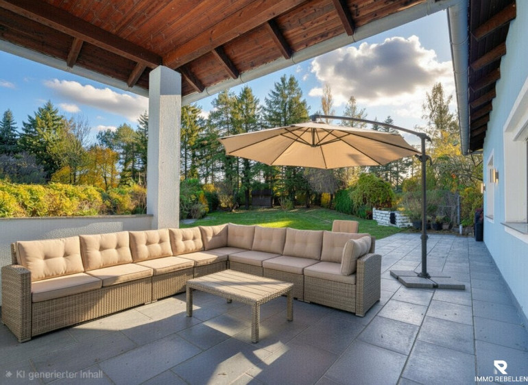 Einige der im Inserat gezeigten Fotos wurden digital gestaged, um Ihnen einen besseren Eindruck der möglichen Raumgestaltung und Außenbereich-Nutzung zu vermitteln (z. B. Möblierung, Dekoration oder fiktiver Poolbereich). Diese Darstellungen dienen ausschließlich der Visualisierung – das Haus wird ohne Möblierung verkauft.