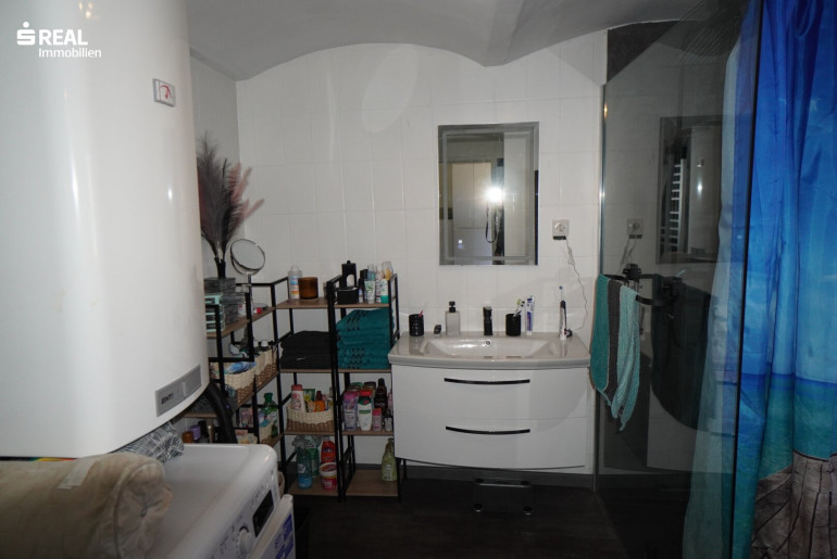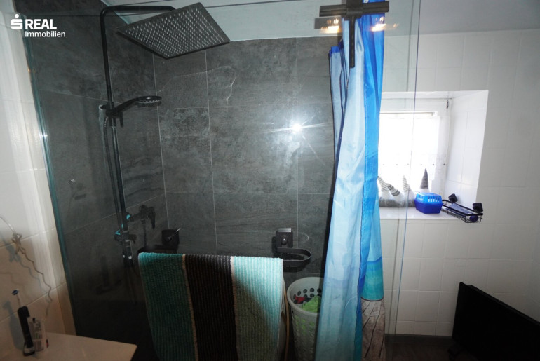 - Badezimmer mit Dusche und Waschmaschinenanschluss