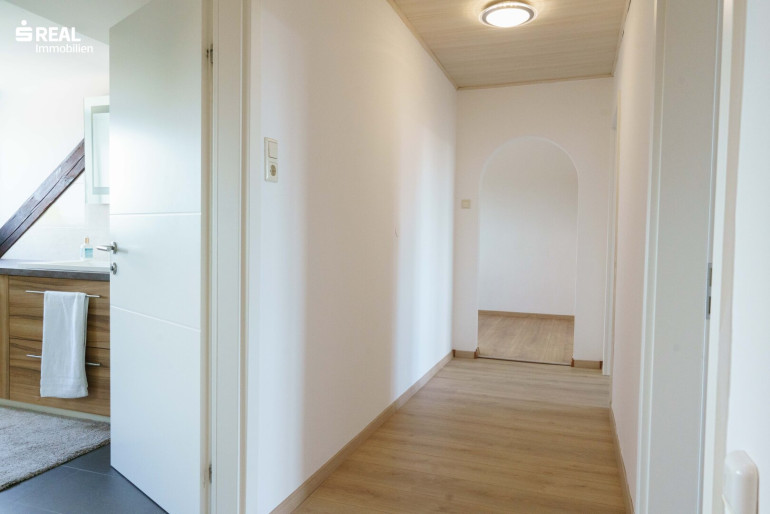 Mit 2 getrennten Zimmern und einer Wohnküche, einem großen Duschbad mit Toilette und Fenster, einem Abstellraum und einem Flur, welcher alle Räumlichkeiten getrennt erreichen lässt, bietet das Objekt eine sehr gute Raumaufteilung, hat einen ganz besonderen Charme und bietet eine atemberaubende Aussicht und Fernsicht.