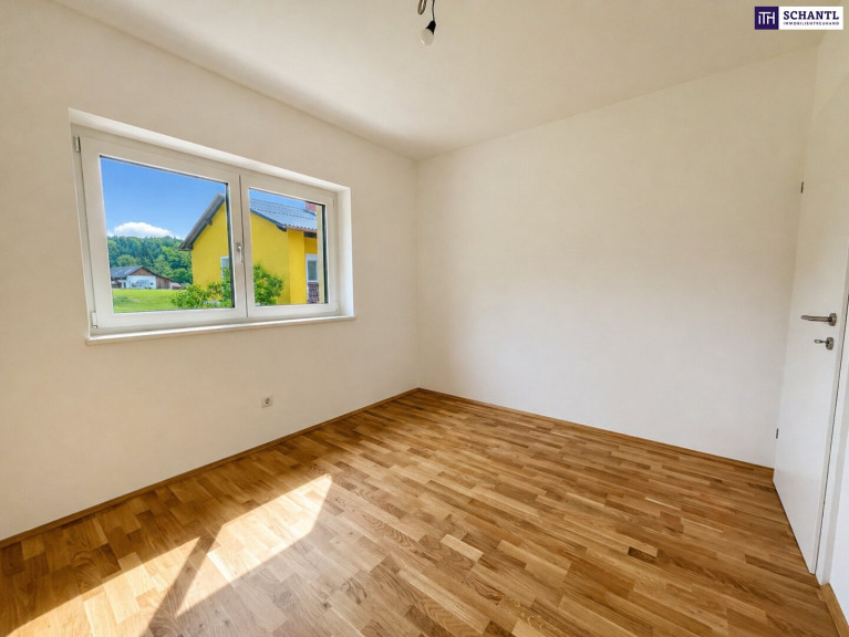 Im Erdgeschoss bildet der großzügige Wohn- und Essbereich mit direktem Zugang zur Terrasse das Herzstück des Hauses. Große Fensterflächen schaffen ein helles, offenes Wohngefühl. Ergänzt wird diese Ebene durch einen Vorraum, ein separates WC sowie einen praktischen Abstellraum.