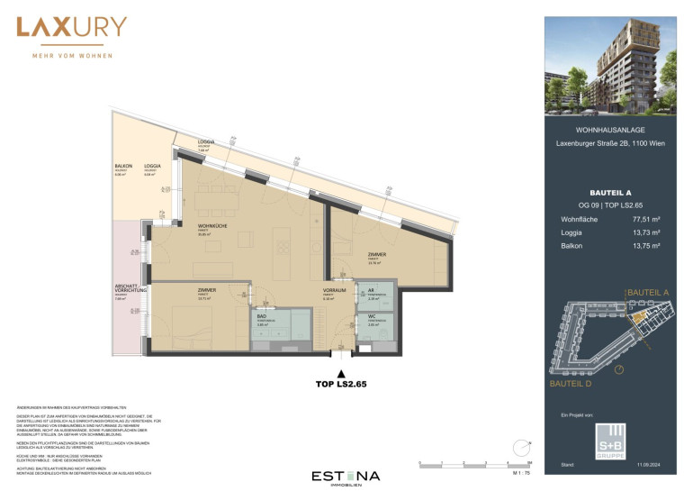 Das neue Grätzel rund um das Wohnprojekt LAXURY mit 10.000 Quadratmeter Grünfläche, ein Outdoorsportplatz und der neue Bildungscampus Landgutgasse bietet Familien ein Umfeld, das Ausbildung, Freizeit und Zuhause perfekt miteinander verbindet. Das Auto findet Platz in der hauseigenen Tiefgarage, die es eigentlich nicht bräuchte, denn mit U-Bahn, Straßenbahn, Autobus und S-Bahn ist man in Windeseile an ganz Wien angebunden.
