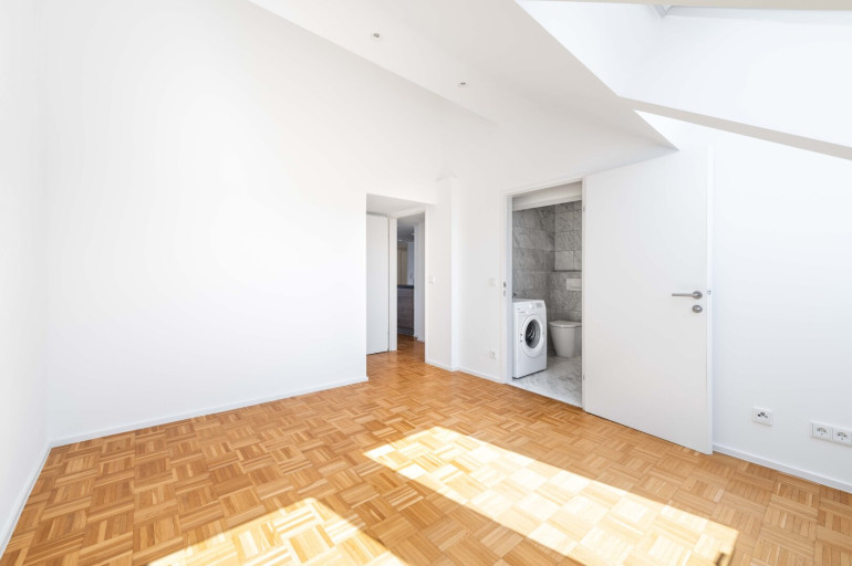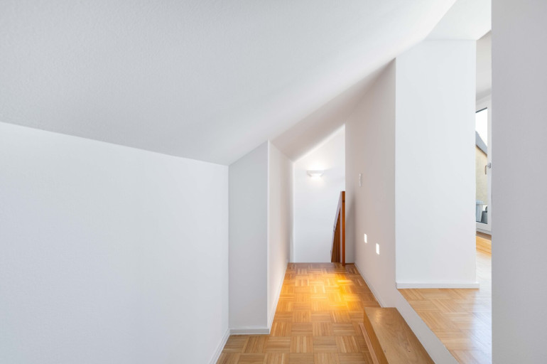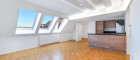 Die Wohnung befindet sich in einem 1995 ausgebauten Dachgeschoss eines klassischen Wiener Altbaus und erstreckt sich über zwei Ebenen (1. und 2. Dachgeschoss). Sie liegt im 1. Dachgeschoss (entspricht dem 4. Stock) – ohne Lift – und bietet eine Wohnfläche von ca. 74,47 m² (ohne Abzug für die vorhandenen Dachschrägen!)