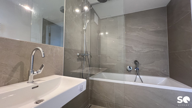 Fliesen, Parkett, Fußbodenheizung, Zentralheizung, Wohnküche / offene Küche, Personenaufzug, Dusche