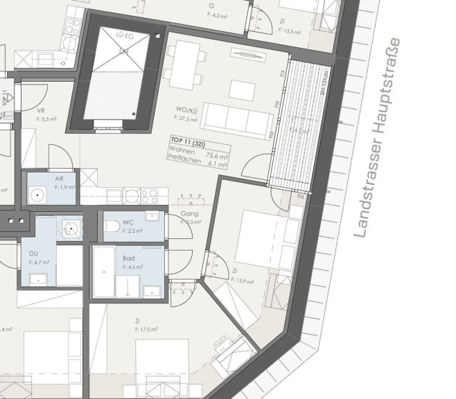 Monatliche Gesamtmiete: € 2.390,– (inkl. Betriebskosten und USt)