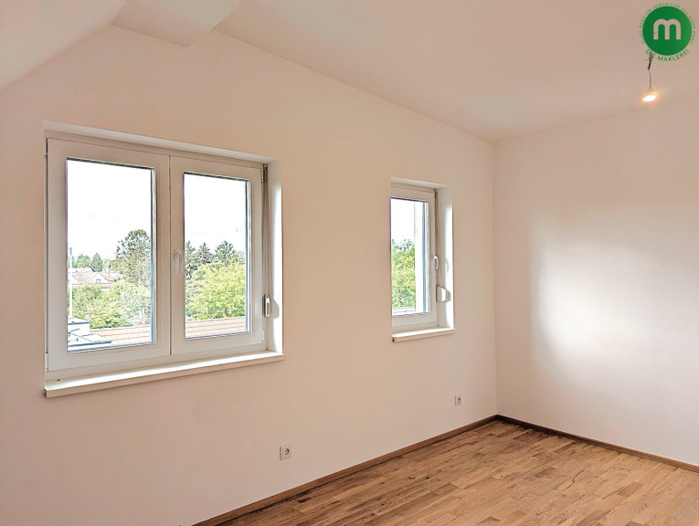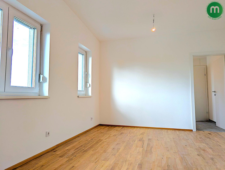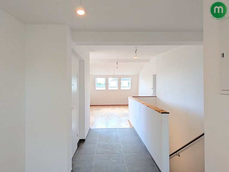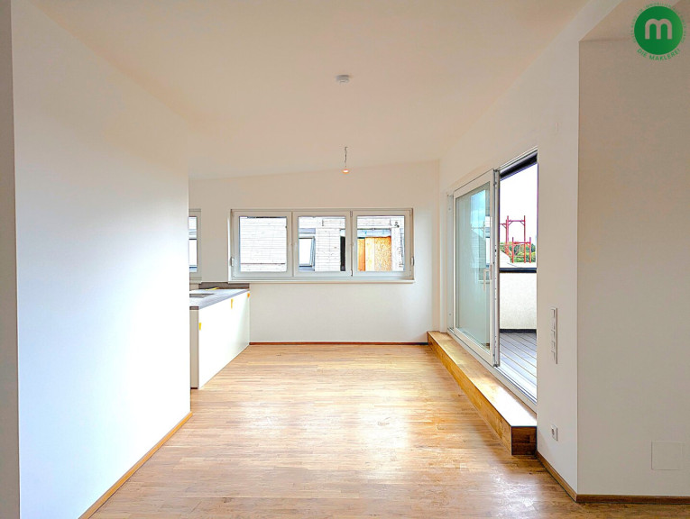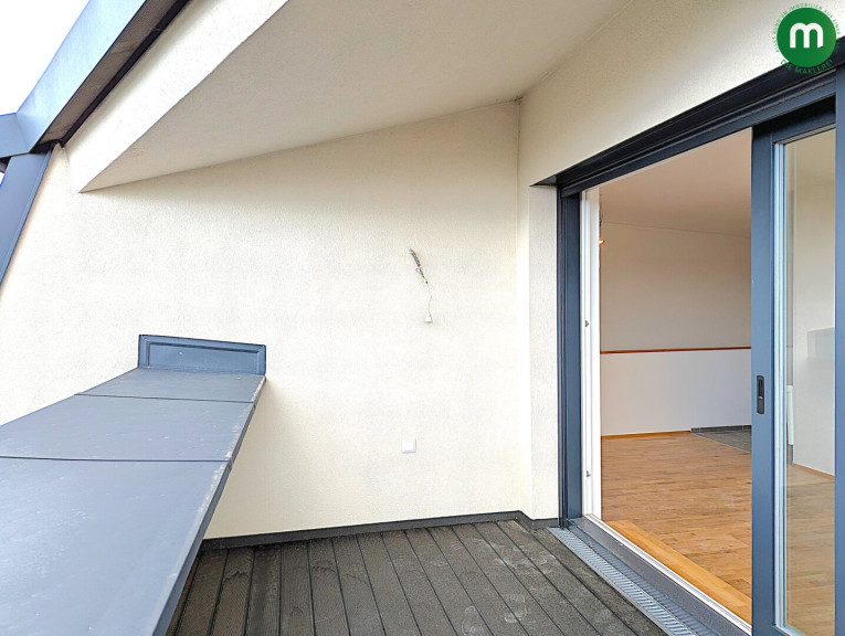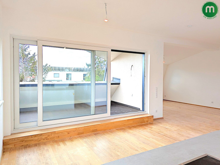 Besonderes Augenmerk wurde auf die Ausstattung gelegt: Edle Parkettböden, eine effiziente Fußbodenheizung (Luftwärmepumpe), dreifach verglaste Fenster sowie hochwertige Sanitäreinrichtungen sind nur einige der Details, die dieses Penthouse zu einem Erstbezug der Extraklasse machen. Auf der Terrasse mit modernem WPC-Bodenbelag genießen Sie entspannte Stunden im Freien und einen Ausblick ins Grüne.