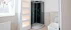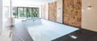 - an diesen schließt der Wellnessbereich mit Schwimmbad, Sauna, Kaltwasserbecken, Umkleide, Dusche und Toilette an