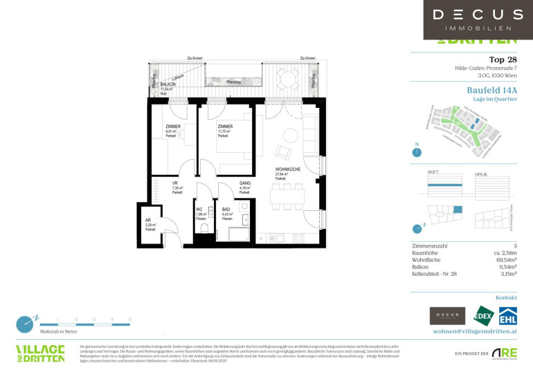 Nähere Informationen zu den Wohnungen auch online unter: https://villageimdritten.at/wohnungsfinder/