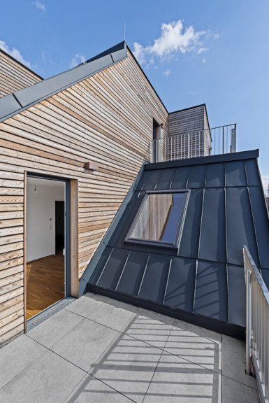 Direkt an der Lobau, in absoluter Ruhelage, entstand ein moderner Neubau in nachhaltiger Bauweise.