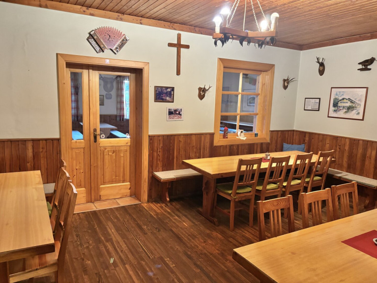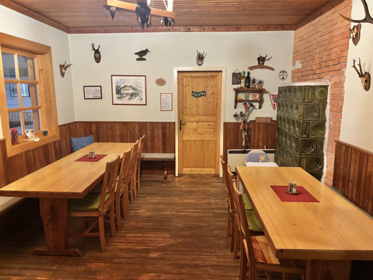 OG.: Schankraum - Gastroküche - zwei Gasträume - Schlafzimmer - WC - Fußbodenheizung ( Strom ) - Kachelofen