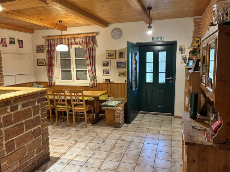 Der ehemalige Heurigenbetrieb ( Buschenschank ) in beschaulicher Ortsrandlage könnte wieder in Betrieb genommen werden, die Voraussetzungen dafür sind vollständig gegeben. Das Objekt bietet aber auch gutes Potential für eine Adaptierung zum Wohnhaus, eine Hauptwohnsitzmeldung ist möglich !! Die auf zwei Ebenen aufgeteilte Nutzfläche überzeugt mit großzügig angelegten Räumen im OG. welche mittels Bodenheizung ( Strom ) und einem Kachelofen beheizt werden, das EG. verfügt über einen gut ausgestatteten Weinkeller und perfekten Lagerflächen. Der gute Gesamtzustand des Gebäudes lässt eine sofortige Nutzung zu, ein paar wenige kosmetische Verbesserungen sind empfehlenswert. Gediegen und ruhig präsentiert sich der weitläufige Aussenbereich mit überdachter Terrasse und einer Gesamtgröße von ca. 3.500 m2 - der traumhafte Blick in die reizende Umgebung widerspiegelt den typischen Charakter des Südburgenlandes vortrefflich. Das arrondierte Grundstück teilt sich in Bauland-Dorfgebiet und Grünland-Kellerzone auf !!