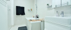 - Badezimmer mit Waschtisch, Waschmaschinenanschluss & Badewanne