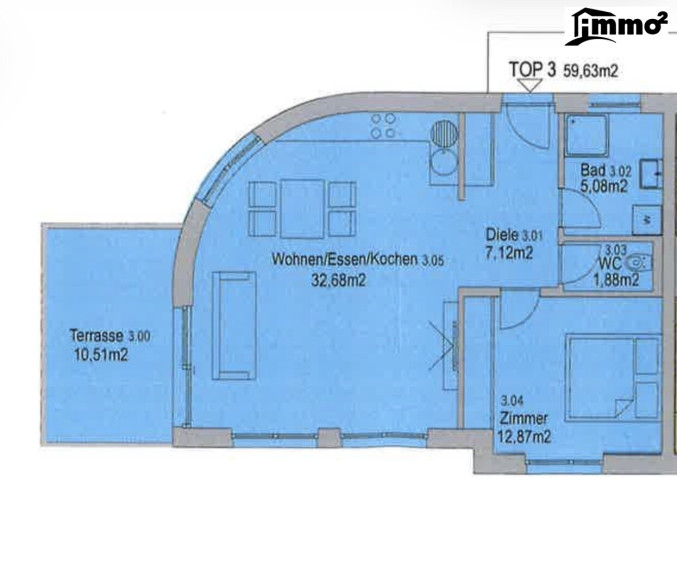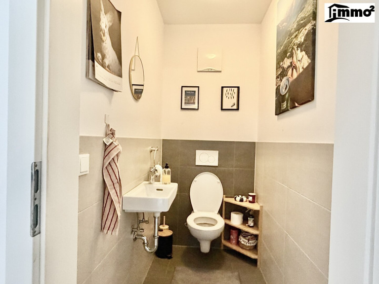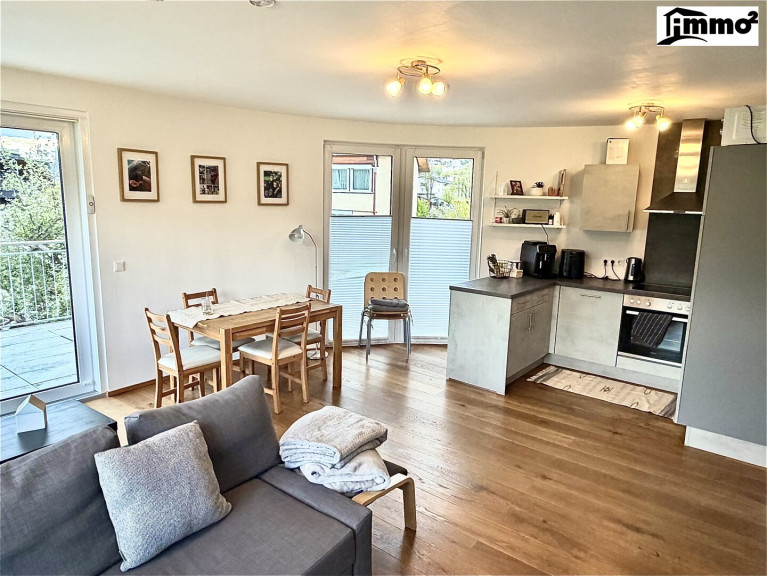 Herzstück der Wohnung ist der offene Wohn- und Essbereich mit integrierter Einbauküche, die sich in einem sehr gepflegten Zustand präsentiert. Ergänzt wird das Raumangebot durch ein Schlafzimmer, ein modernes Badezimmer mit Dusche, ein separat ausgeführtes WC sowie einen praktischen Abstellraum. Ein einladender Eingangsbereich rundet das stimmige Gesamtbild ab.