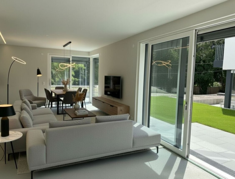 Zeitlose Eleganz und eine besondere Materialwahl auf höchster Qualität wie energiesparende Luftwärmepumpen und Raumkühlung durch innovative Kühldecken versprechen nicht nur ein perfektes Wohngefühl, sondern es wird auch nachhaltig an die Zukunft für morgen gedacht.