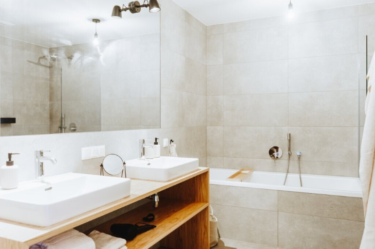 - Badewanne, Dusche, Doppelwaschbecken, Handtuchheizkörper
