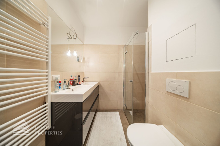 Die Wohnung gliedert sich im unteren Bereich in einen Vorraum, zwei Zimmer, ein Bad mit Dusche und WC und ein separates WC und im oberen Bereich befindet sich die große Wohnküche mit Zugang zur wunderschönen Terrasse.