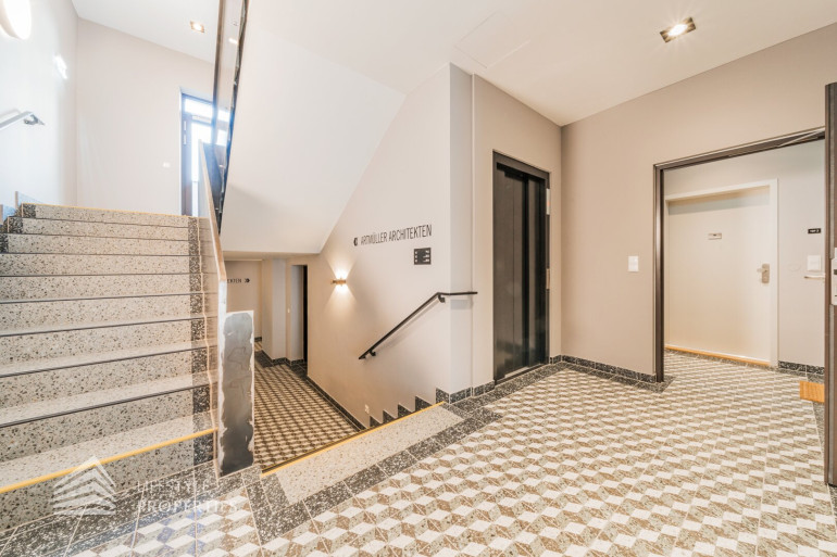 Dielenboden, Fliesen, Fernwärme, Einbauküche, Wohnküche / offene Küche, Personenaufzug, Dusche