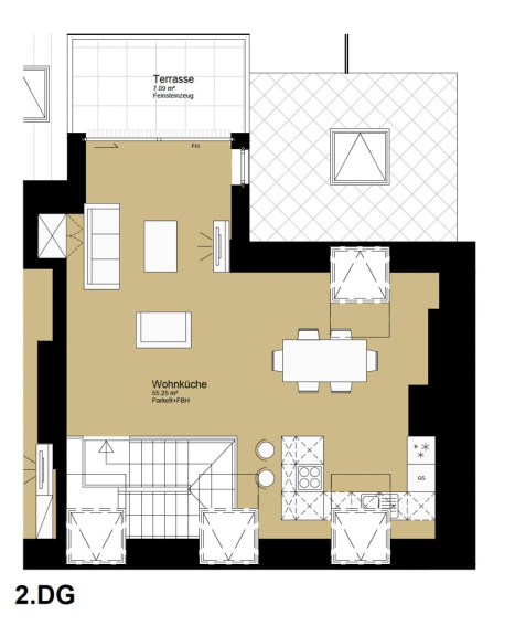 Zur Vermietung gelangt eine exklusive 3-Zimmer-Dachgeschosswohnung mit Terrasse im 5. Wiener Bezirk.