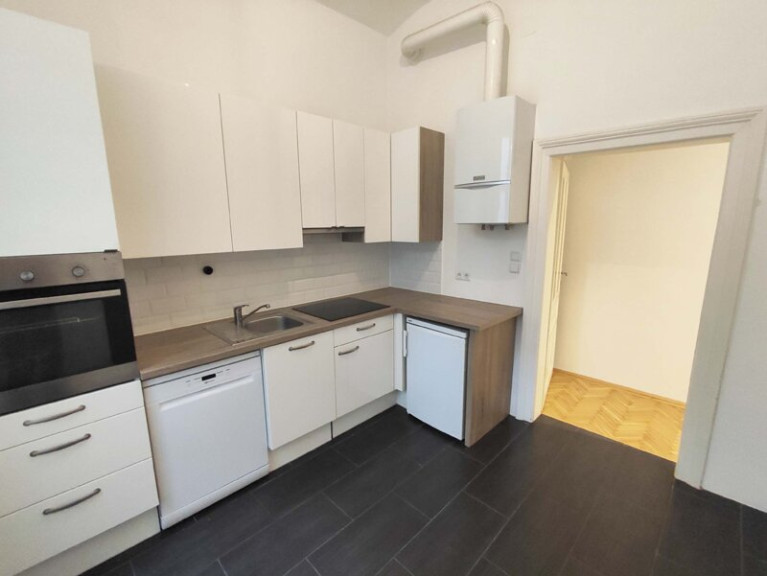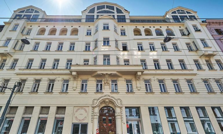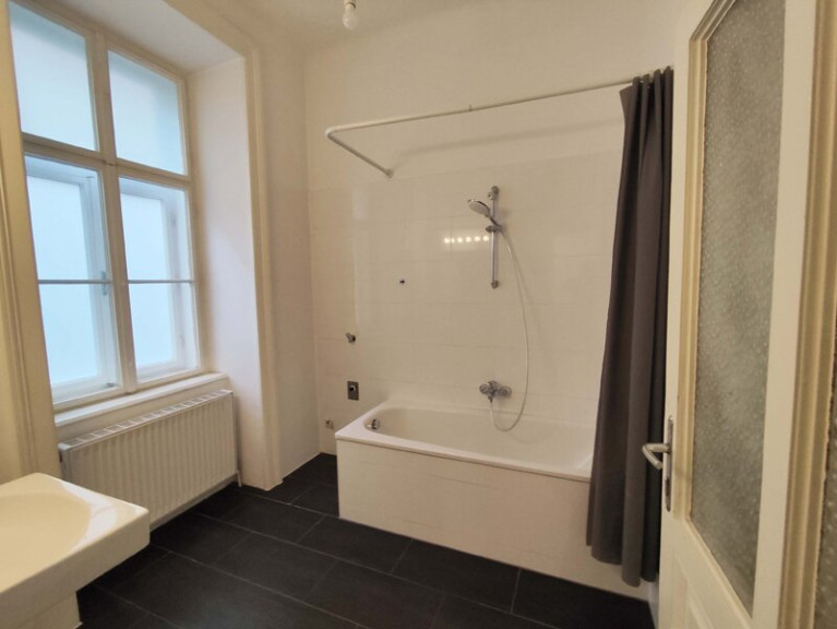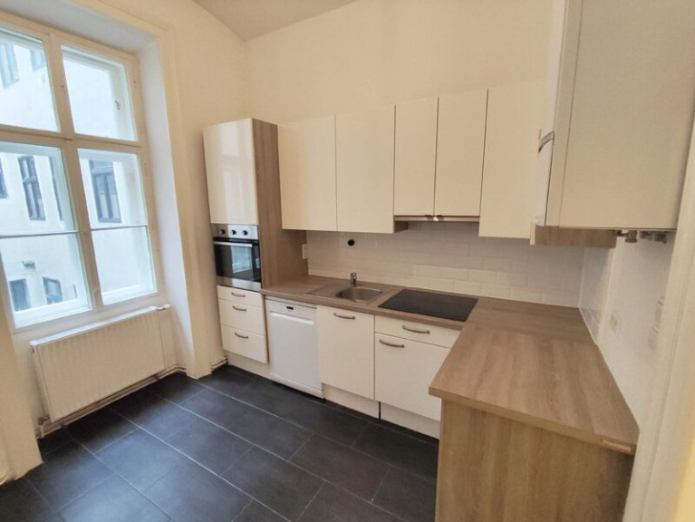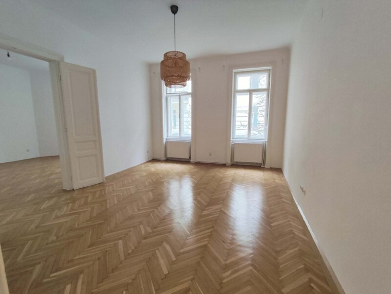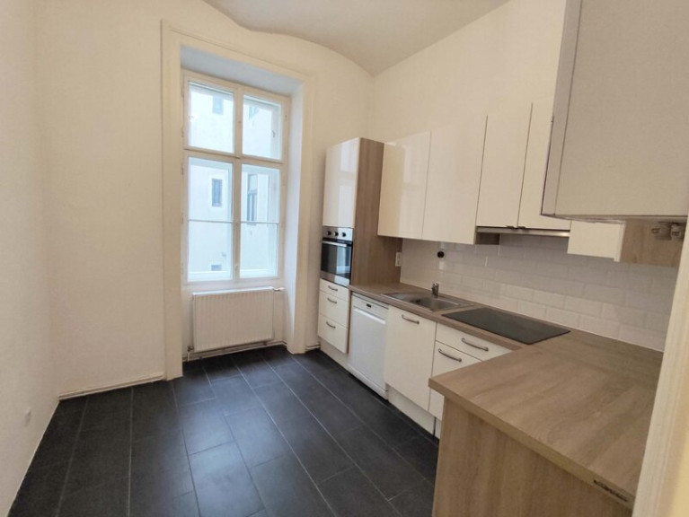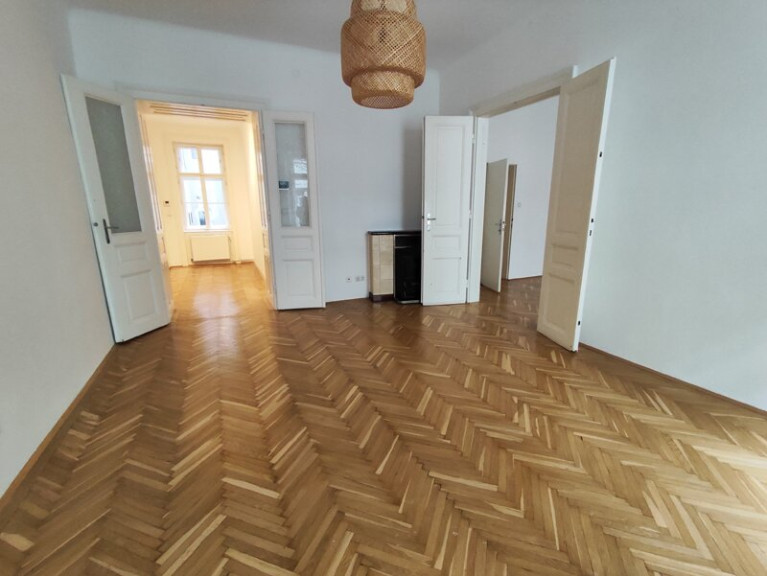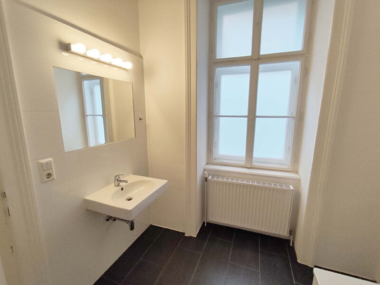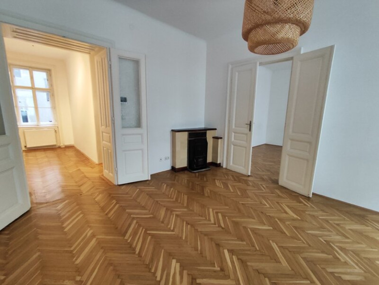 Die 2-Zimmer-Wohnung befindet sich im Mezzanin (= 1. Liftstock) des Hoftrakts, und verfügt über 74,49 m2 Wohnfläche. Raumhöhe ca. 2,90 m.
