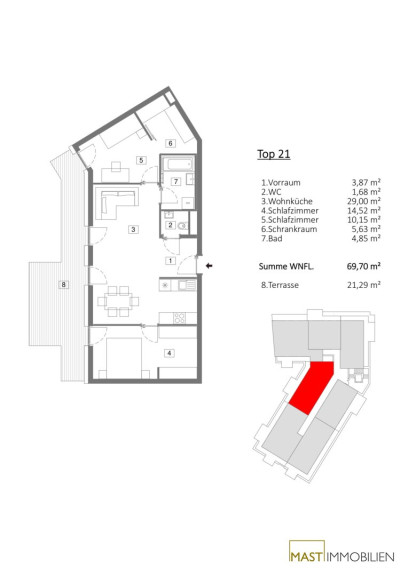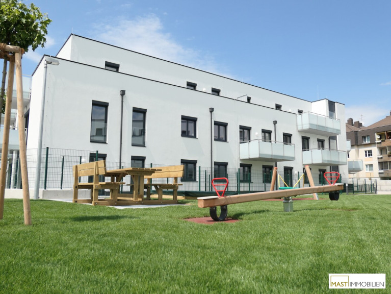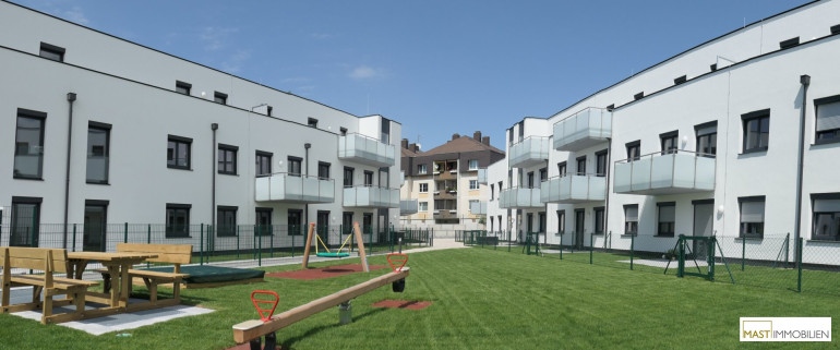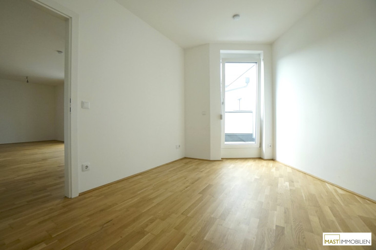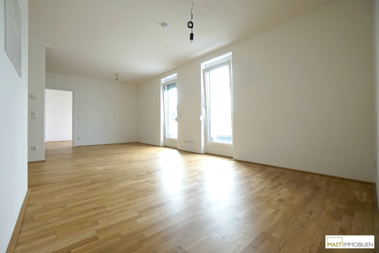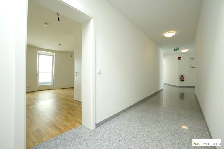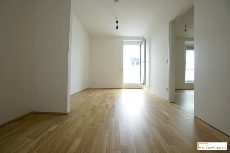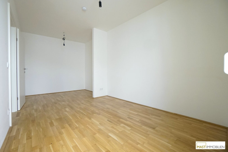 Sobald Sie die Wohnung betreten, gelangen Sie in ein Vorzimmer mit ausreichend Platz für Ihre Garderobe. Das WC ist natürlich direkt vom Vorzimmer aus, separat begehbar und wurde mit einem Waschbecken ausgestattet. Die südwestlich Wohnküche (ca. 30 m²) verfügt über direkten Zugang auf die ca. 21 m² Freifläche "XXL Terrasse / Balkon". Das Schlafzimmer mit einer Fläche von ca. 14 m² und Kinderzimmer (ca. 11 m²) wurde optimal geplant und bietet ebenfalls einen direkten Zugang auf die Terrasse. Wie laut Plan ersichtlich, ist das Schlafzimmer mit einem Schrankraum ausgestattet. Das modern gestaltete Badezimmer wurde mit einer Dusche, WM-Anschluss & Waschbecken in "Anthrazit/Weiss" veredelt. Die Markenküche der Firma EWE beinhaltet sämtliche wichtigen Geräte wie z.B. Geschirrspüler, Herd, Kochfeld & Kühl-/Gefrierschrank.