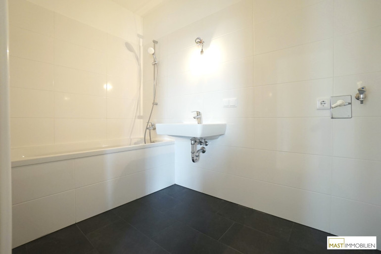 - Badezimmer mit Dusche, Waschbecken & WM-Anschluss