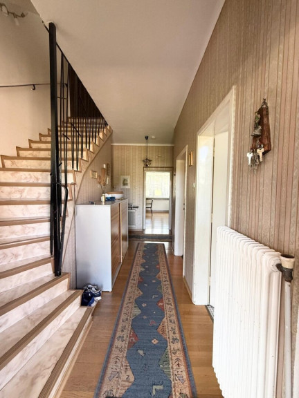 Über die überdachte Terrasse, einem herrlichen Platz zum entspannen, ausgestattet mit einer Grillstelle und einem Essbereich, betritt man das Erdgeschoss des Hauses (BJ ca.1960). Hier erwartet Euch folgende Aufteilung: