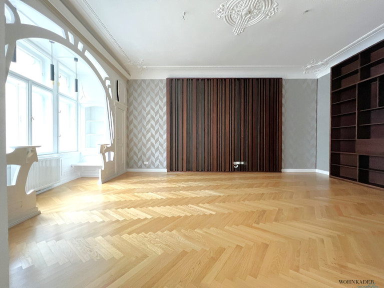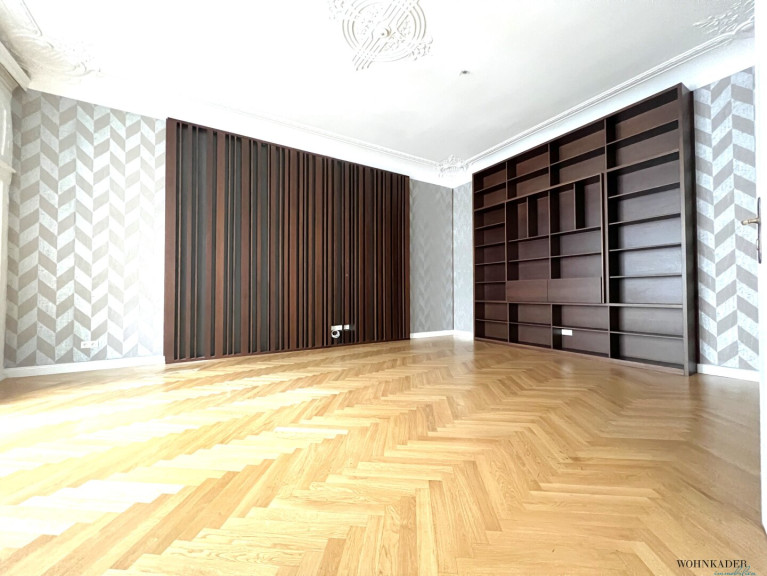 Der großzügige Hauptbüroraum ist mit maßgefertigten Einbaumöbeln/Regal und Verbau ausgestattet, die exklusiv angefertigt wurden und höchsten Qualitätsansprüchen entsprechen. Diese individuellen Tischlerarbeiten verleihen dem Objekt eine besondere Note und schaffen ein einzigartiges Arbeitsumfeld.
